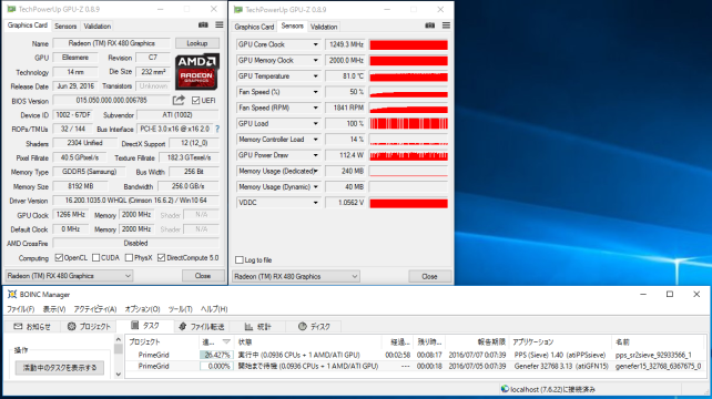 一番やってみたかったAMD GPUでのBOINC PrimeGrid GPU演算ですが、そのままではWorkUnitも何も降ってこず動きません(注:購入直後ではそうだったが、現在はそのままでwuが降ってきます。)