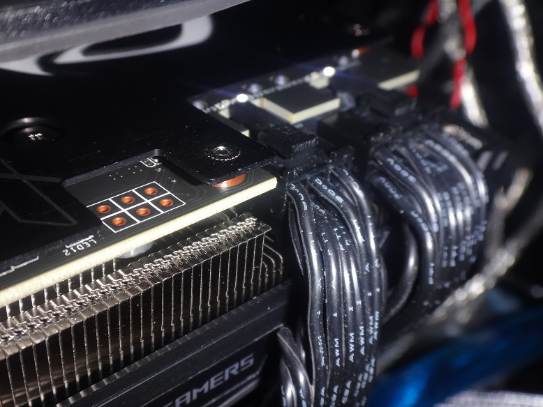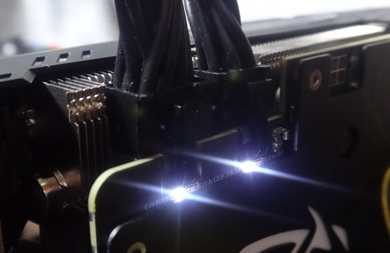 補助電源が正常に接続されているとLEDが点灯し、コネクタが刺さり切っていなかったり、コネクタを刺し忘れているとLEDは消灯したままになります。