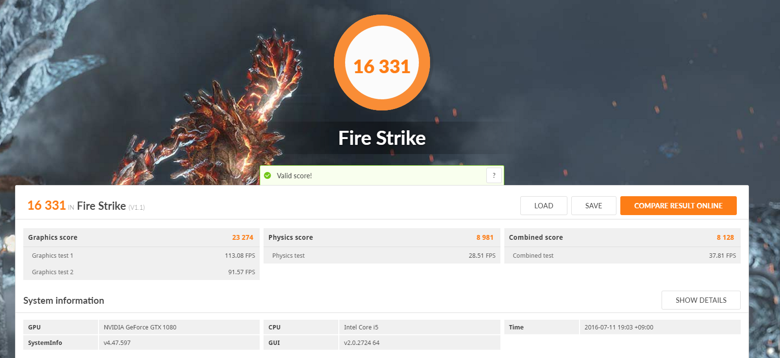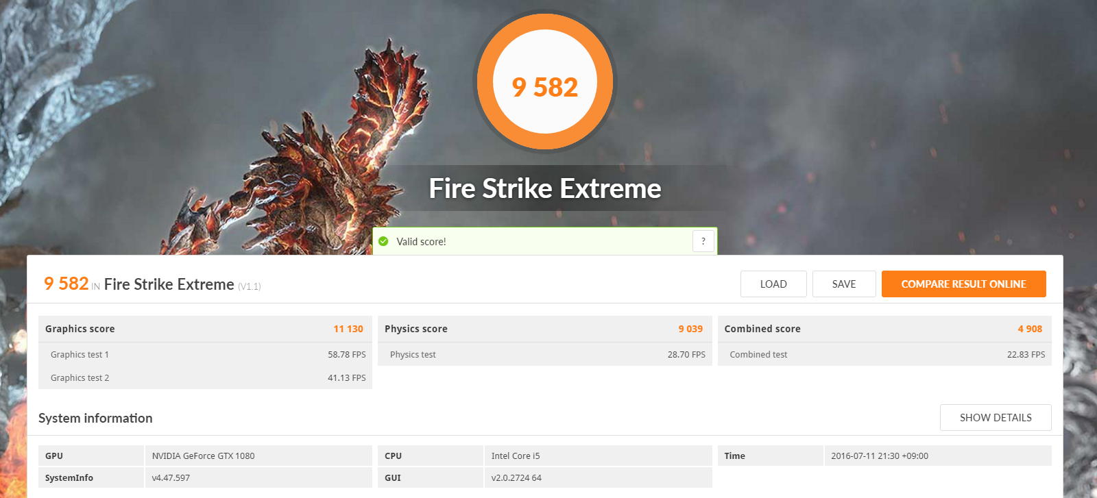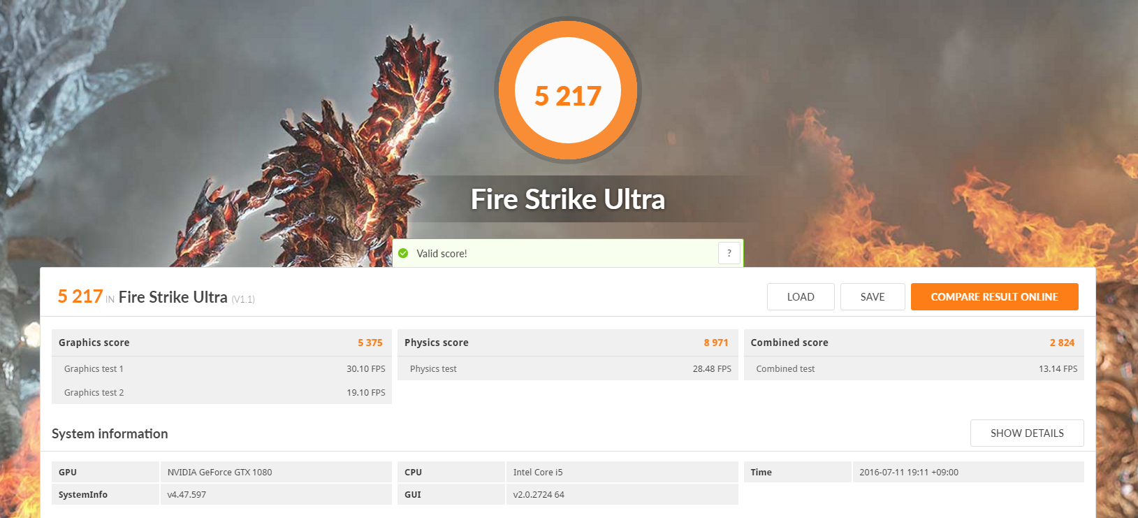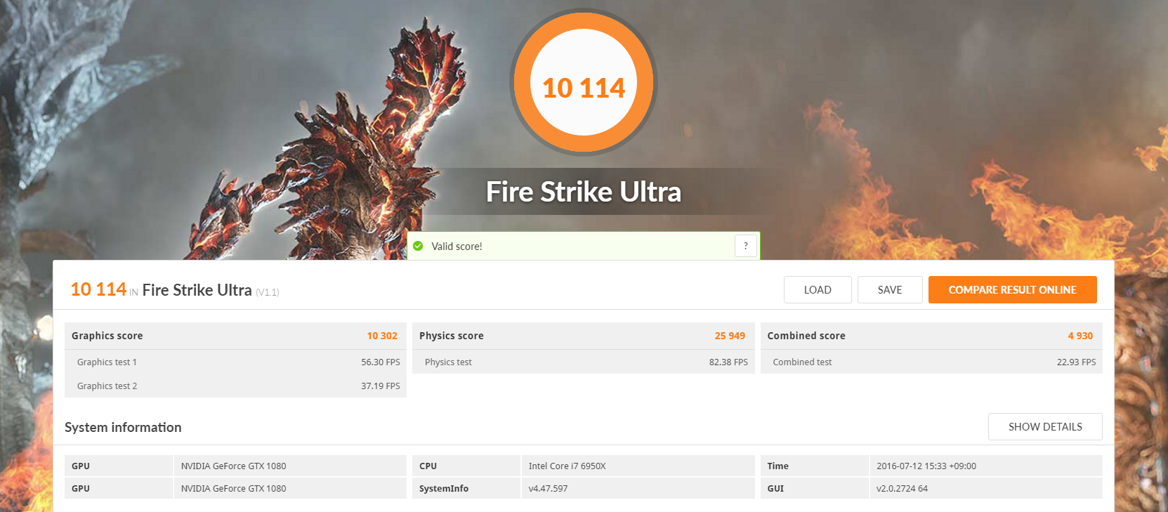 さらにOCモードのASUS ROG STRIX GTX 1080でSLIを組んでFireStrikeUltraを回してみました。
