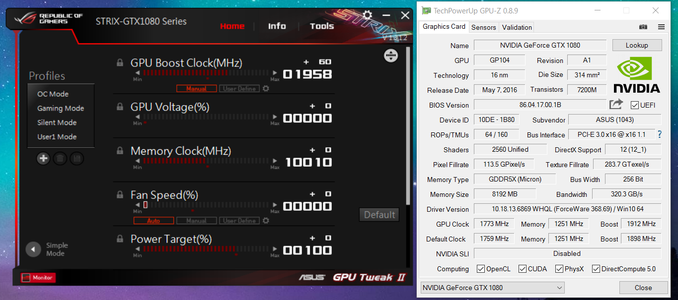ASUS ROG STRIX GTX 1080 OC セットアップ