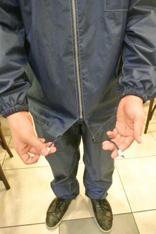 上着の裾にはストラップ式の絞り機能がありますが、ズボンの裾にはその機能が備わりません。