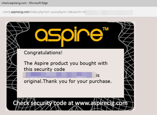 スクラッチすると現れるシリアルナンバーで正規品か否か