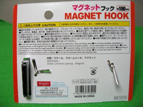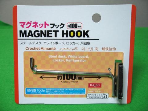 机脚にハンガーを付けるのが簡単かなと、マグネットフックを購入してきました