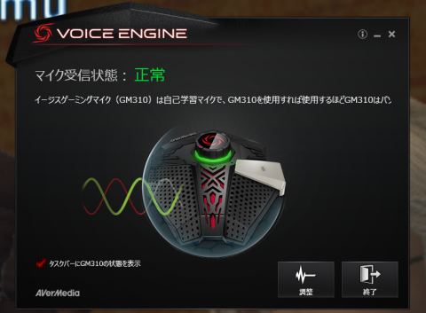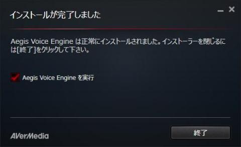 そして終了ボタンを押すとAegis Voice Engineが自動的に起動します。