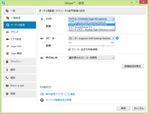 ・基本オーディオデバイスからAverMedia Aegis Microphoneを選択し、