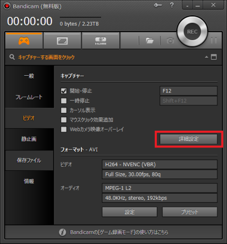 今回はBandicamを使用しましたので、そちらを例にとって説明していきます。