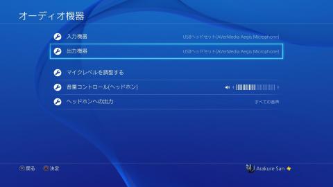 スピーカーから使用しているスピーカー(ヘッドフォン)を選択。