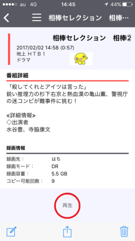 録画リストも無事出て来たので、半信半疑でPLAYをタップしました。