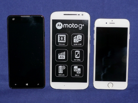サイズ比較として、左にMADOSMA(5inch)、右にiPhone6(4.7inch)を