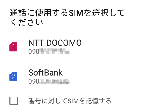 チェックを入れると、この番号に対して以後は発信するSIMを記憶してくれます。