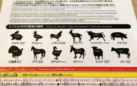 ウサギ、アヒル、ニワトリ、ヤギ、バッファロー、ブタ、七面鳥、ウマ、ガチョウ、ロバ、ヒツジ、ウシ12個。