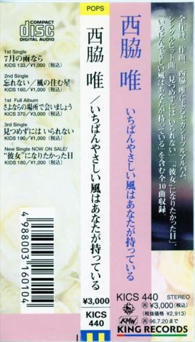 1994.7.21 キングレコード KICS440 西脇唯「いちばんやさしい風はあなたが持っている」