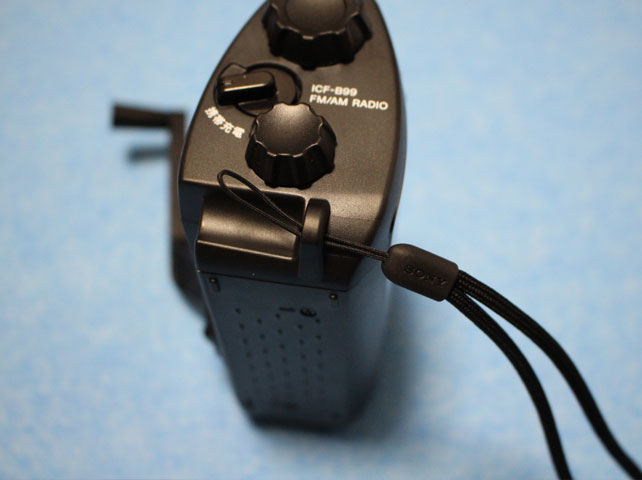 上から 選局つまみ/バンド切り替えスイッチ/音量つまみ/ストラップホール