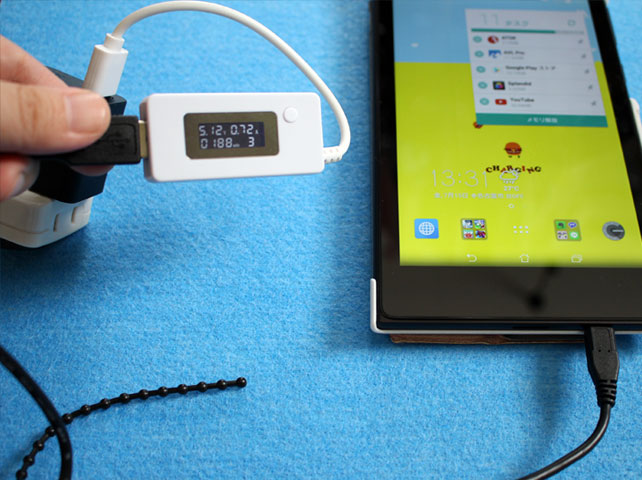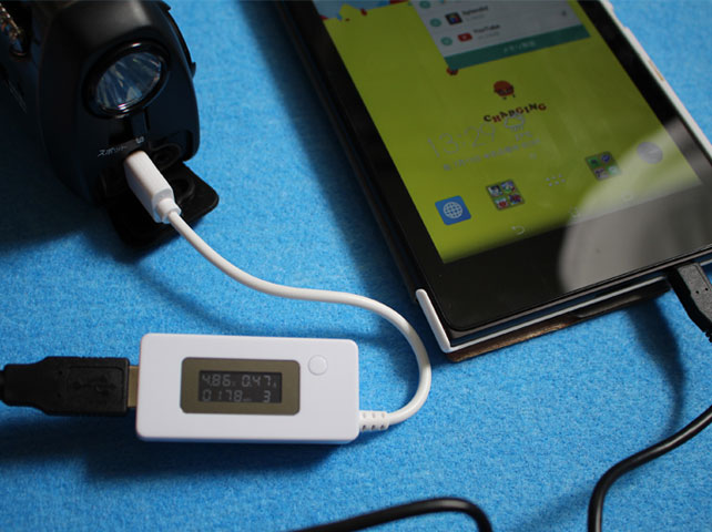 ガラケーへの充電は普通にできるだろうなので、手持ちのタブレットを充電可能か試してみました。