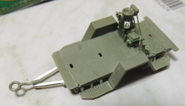 車体後部につくアウトリガーは1mmプラ角材とプラ板ででっち上げ。