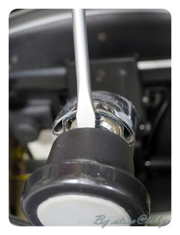 交換方法は、入っていた袋に貼られたシールに書いてありますが、根元をマイナスドライバー等を使いてこの原理で引き抜きます。
