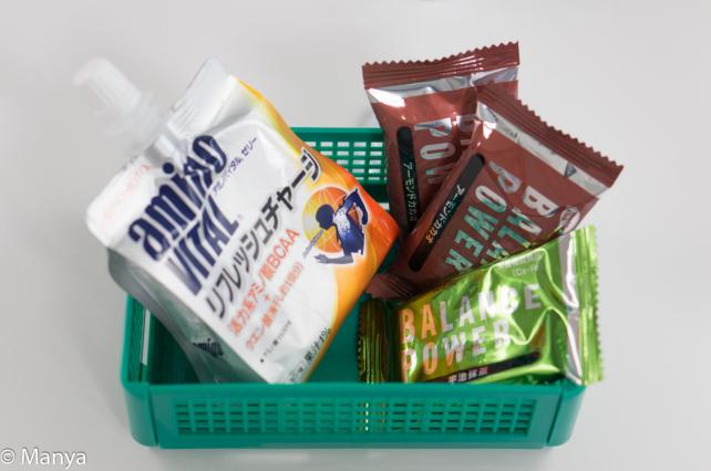 裸で持ち運ぶと崩れてしまいやすい栄養食品やパンなどを入れて出発。