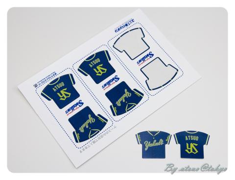 ユニフォームはホーム・ビジターに加え、つば九郎バージョン等いくつかあり、私はビジターユニフォームで作り、息子はホームユニフォームのつば九郎で作りました。