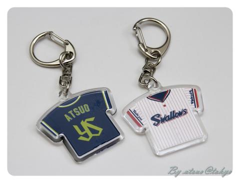 プリクラの様な機械で、ストラップ種類(ボールチェーン、ストラップ紐、ナス環)とユニフォーム柄を選び、名前を入力するとケースと選択したユニフォームに名前が入ったモノが印刷され出てきます。