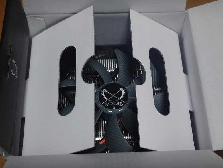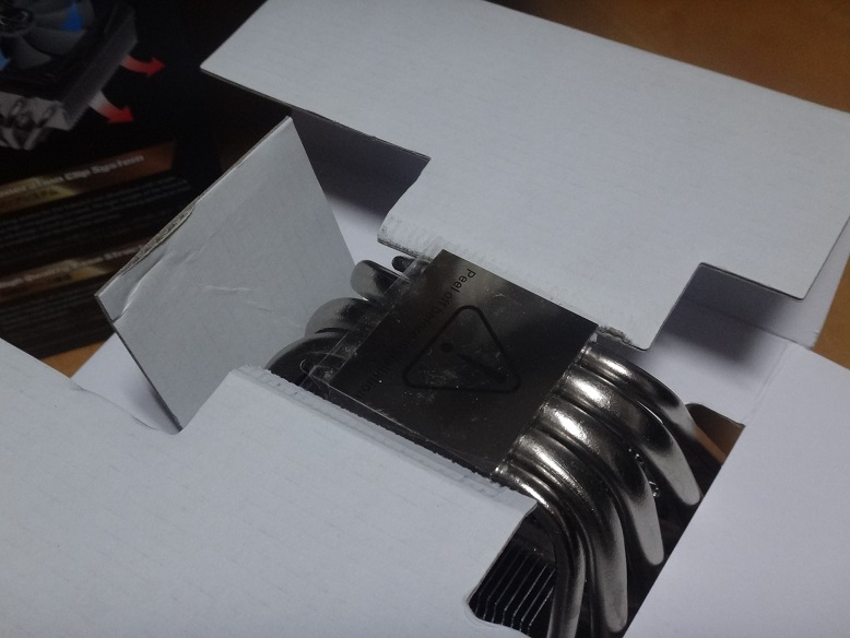 箱の中には厚紙製のスペーサーでCPUクーラー本体が固定されており、持ち手部分を持って引き上げるとそのまま取り出せるようになっています。