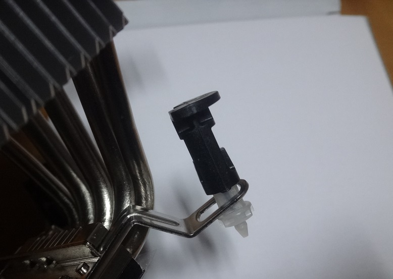 プッシュピンはユニバーサルデザインで可動域が大きいため結構グラグラしています。取り付けてしまえばしっかり固定できましたがピン位置が動くのでCPUクーラーの取り付け位置を決めるのにちょっと困りました。