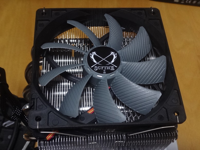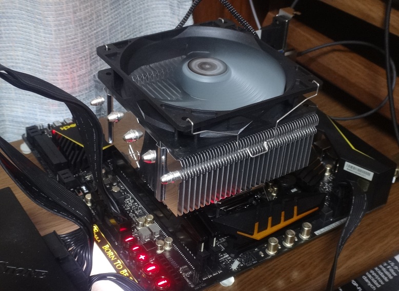 マザーボードに取り付けました。あとクリップ固定ですが針金タイプのファンガードは取り付け可能でした。