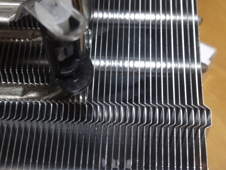 フィン幅が結構広めに取ってあるので低速ファンをゆるゆる回すことも想定されているんだと思います。