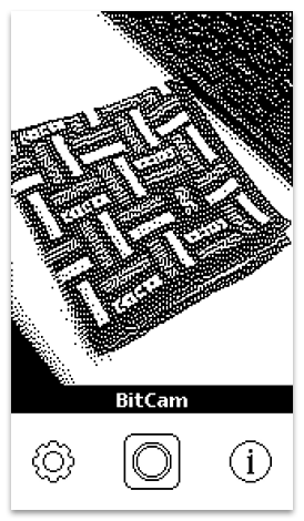 以前、Mac OS Xのテーマ作りにハマっていた頃に大変お世話になったThe IconfactoryによるiPhoneアプリで、本アプリを使用すると、iPhone搭載カメラの高性能さを一切無視した、初期のMacで表示したようなザラザラな1ビット画像が撮れます。