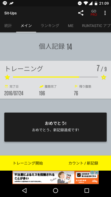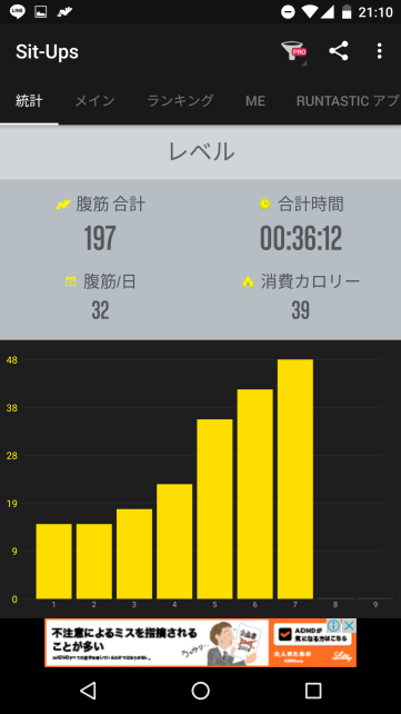 筋肉痛消えました。でも毎日腹筋回数が多くなってつらいw