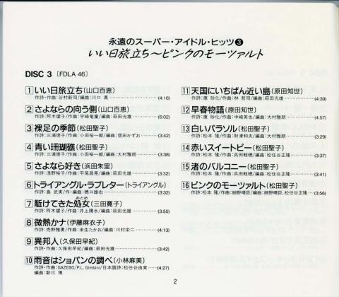 永遠のスーパー・アイドル・ヒッツ③いい日旅立ち~ピンクのモーツァルト CBS/SONY FDLA46