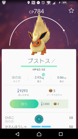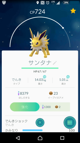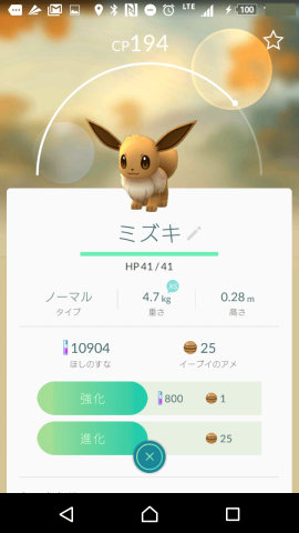 ようやく「イーブイのアメ」が25個になったので進化させることに。