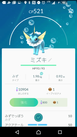 情報によると「シャワーズ」が強いらしいので、「ミズキ」にしてみました。
