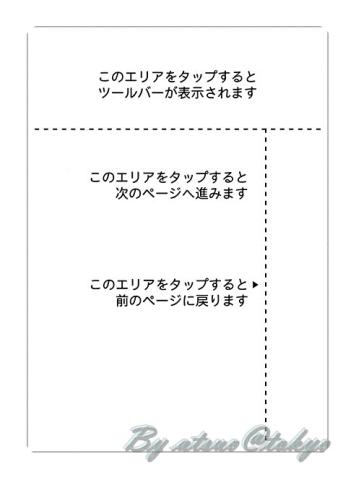 本を開いたら画像を参考に対応する画面位置をタップする事で、それぞれの操作を行えます。