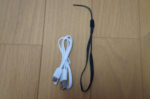 充電用のMicroUSB-USBケーブル、ストラップも付属しています。