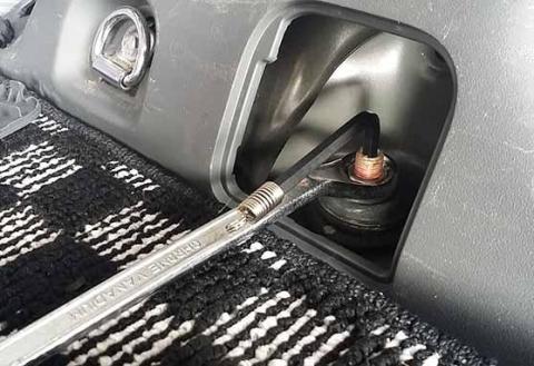 私のプリウスαは、メンテナンスホールが荷室にあるので、車体側固定ボルトまでのアクセスは簡単でしたが、年式によっては荷室の内張りを剥がさないと車体側の固定ボルトが出てこないみたいです。
