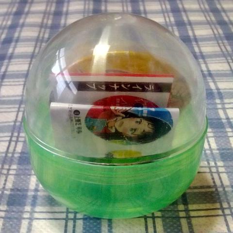 黒い袋からカプセルを取り出した時点で、カプセルを開けずとも覗く缶バッジの縁の色で何を引いたのか察しましたが、心を落ち着けてパカっと。