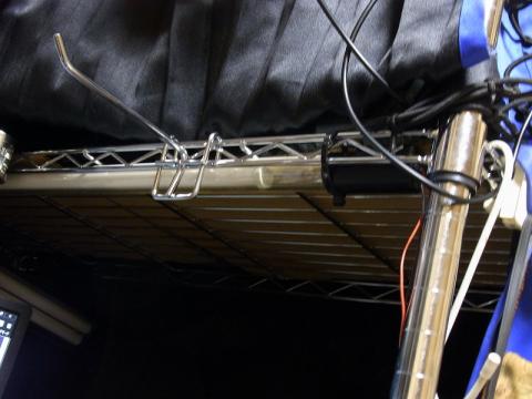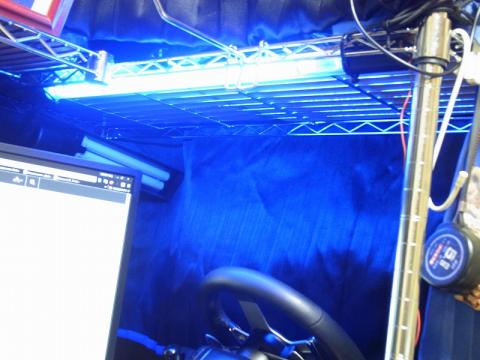 せっかく光ったのでスチールラックにインシュロックで止めて部屋をバカっぽくしてみましたw
