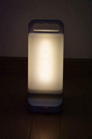 キャンプなどで使う場合は、日中はこのように広げて充電をして、暗くなってからランタンとして使う。