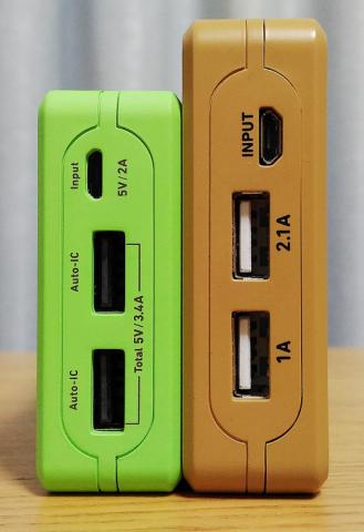 さらに出力側も従来は1A ”と” 2.1Aと用途別に分かれていて使い勝手がやや悪かったのですが、こちらも改良されていて合計で3.4A出力となりました。