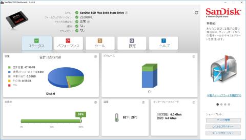 SSDを管理するソフト「SSD Dashboard」が付属し、パフォーマンスや動作状態のモニター、ファームウェアのアップデート通知などの管理が簡単に行えます。