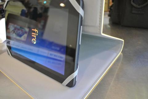 7インチのFIREタブレットは、ベゼルサイズが大きめなので、シリコンゴム製の固定具は外側の切れ目を利用する形です。
