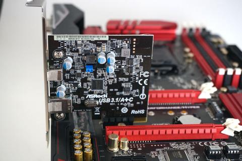 USB3.1カードは単品販売されている「ASRock USB 3.1/A+C Card」をそのまま中身だけ押し込んだモノ。