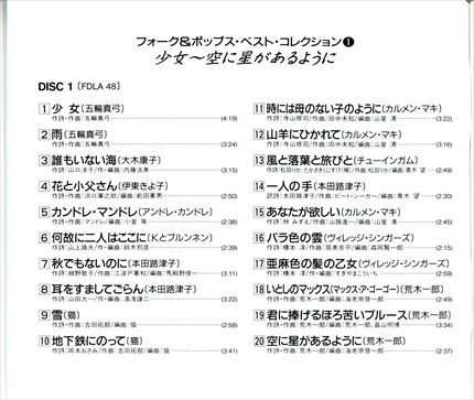 フォーク&ポップス・ベスト・コレクション① 少女~空に星があるように CBS/SONY FDLA40