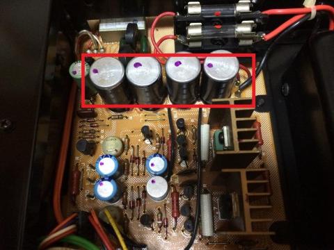 平滑コンデンサはこのアンプの構造的な問題からかなり熱の影響を受けています。