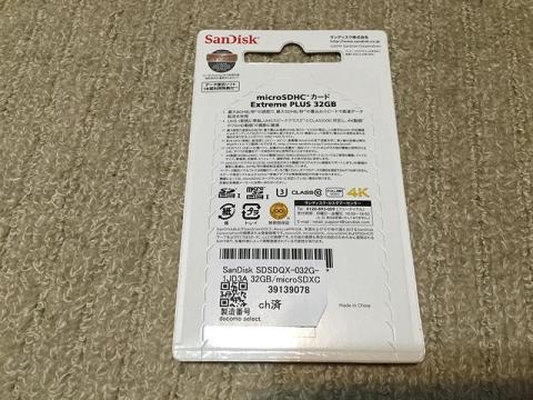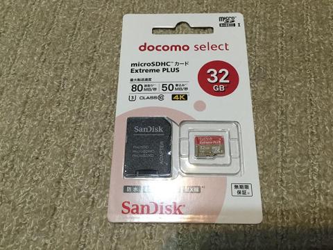 アイテム情報はSanDiskの日本正規版のものとなっていますが、実際に購入したのは同じ正規品でもNTT docomo取扱品の「SDSDQX-032G-1JD3A」となります。もっとも、パッケージ以外の部分は正規版の「SDSDQX-032G-J35PA」と全く同一の筈ですが。