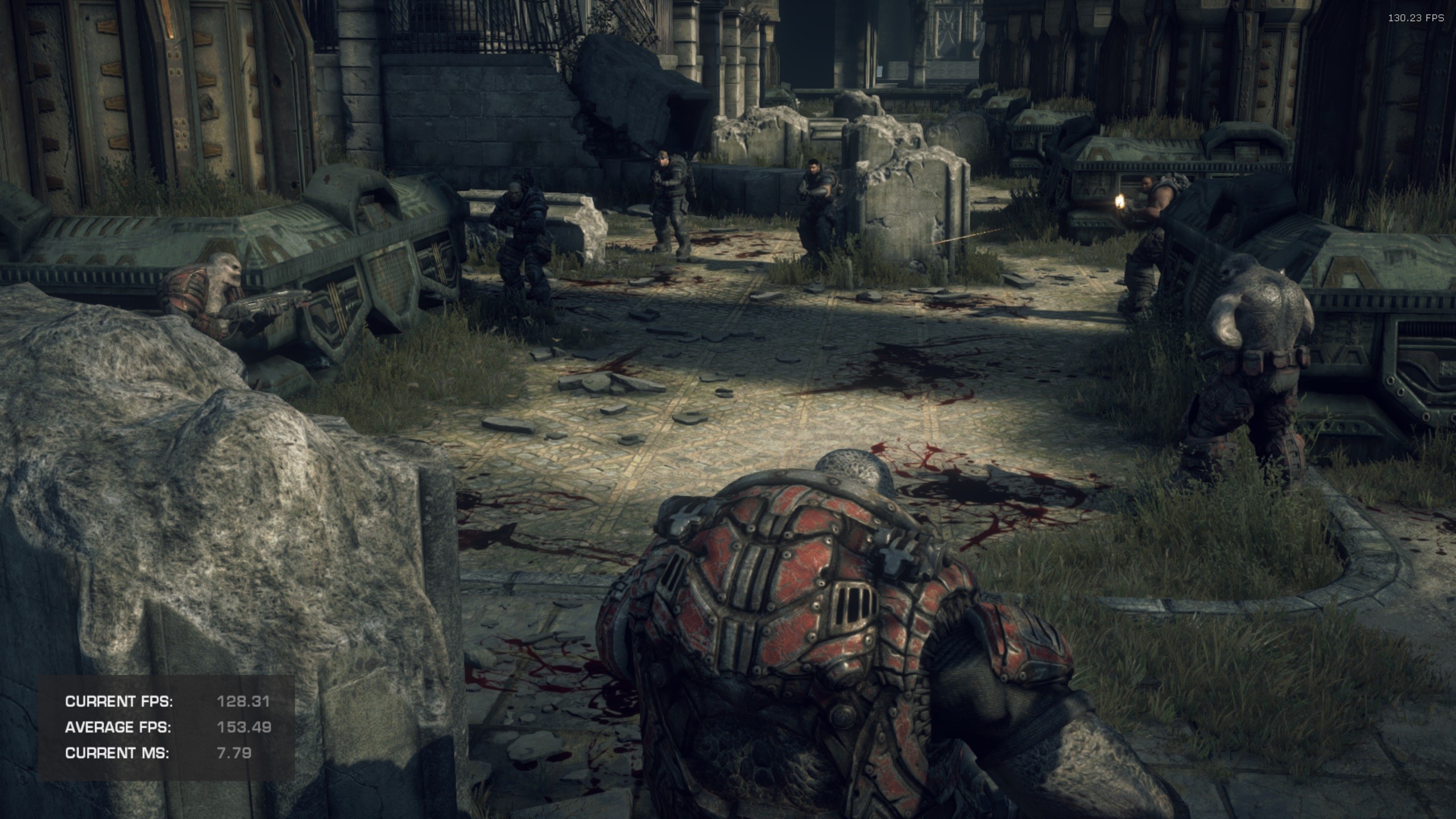 最後にDirectX12ネイティブ対応ゲームのベンチマークとしてGears of War:UEで測定を行いました。グラフィック設定は最高設定としてフルHDとWQHD、加えてTitanX Pascalのみですが4K解像度で測定しました。