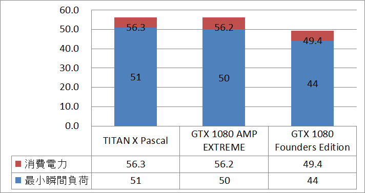 NVIDIA TITAN X Pascalの消費電力は313WでGTX 1080 FEよりも78W高く、瞬間最大負荷は368WでGTX 1080 FEよりも102W高くなりました。TDPの差は70Wですがそれよりも電力の差は大きくなっています。