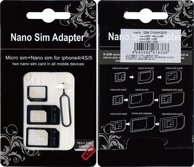 nano SIM Adapterは、nano SIMを標準SIサイズにしたり、micro SIMサイズにすることができます。