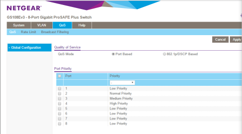 わかりやすくするために用意されている4つの優先度を各ポートに設定してあります。