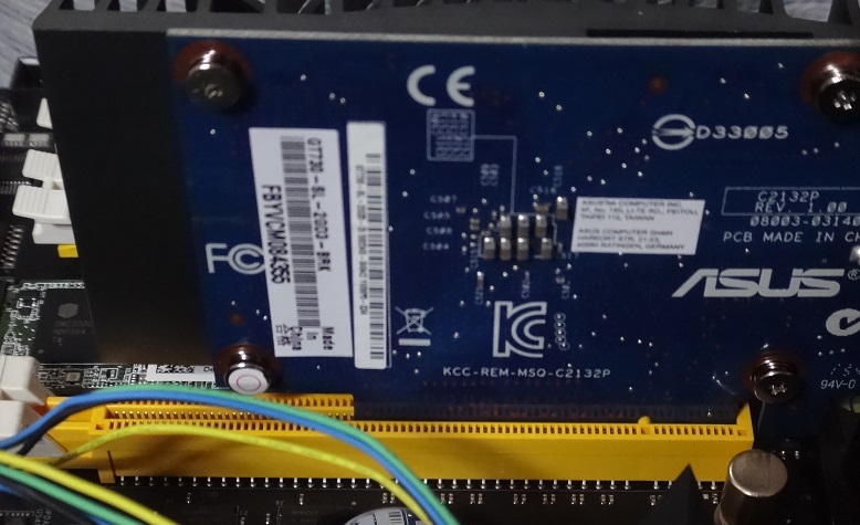 挿してから気づいたんですが、PCI-Ex16ではなくて、x8サイズでした。 初めて見た。